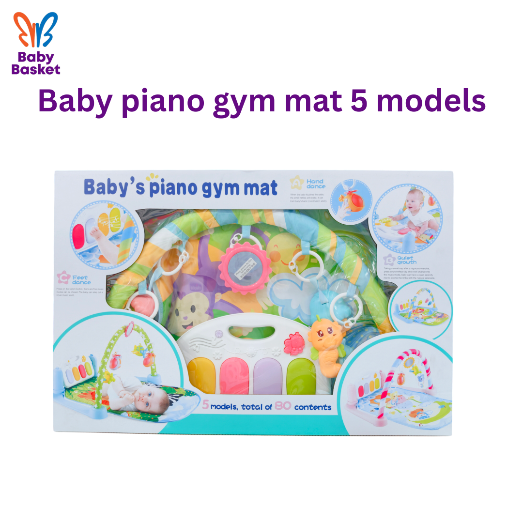 Comes with piano keys, mirror & 4 animal hanging toys.