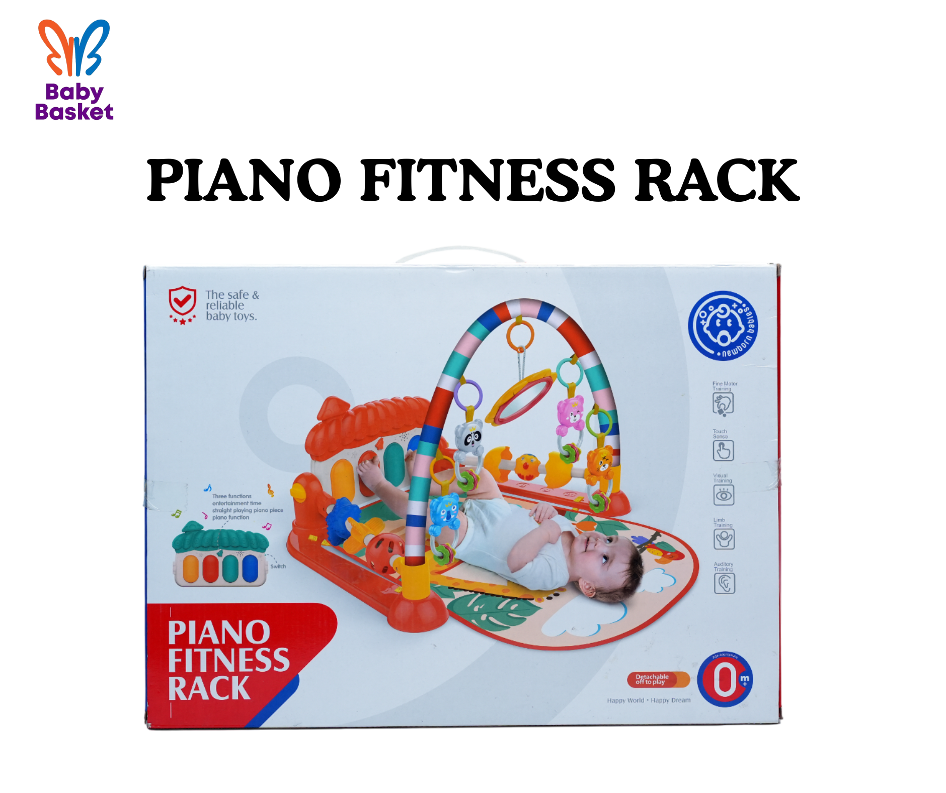 Interactive Piano Unit: At the heart of the gym mat is an interactive piano unit. Designed to be played with both hands and feet, this piano unit produces enchanting sounds and melodies when pressed, introducing babies to the concept of cause and effect.