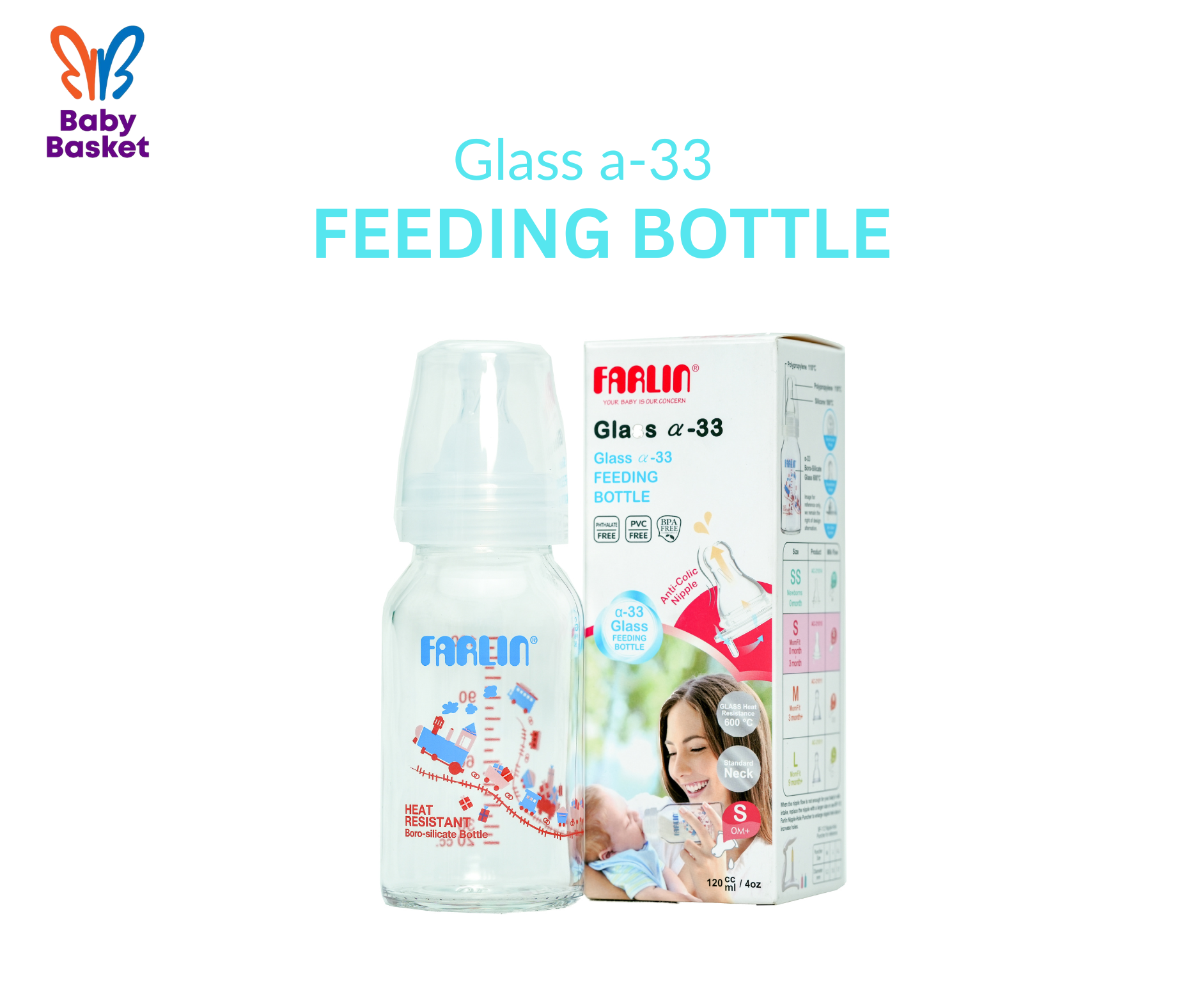 1. The Farlin Glass Bottle is compatible with standard-size bottle accessories, including nipples, caps, and collars.