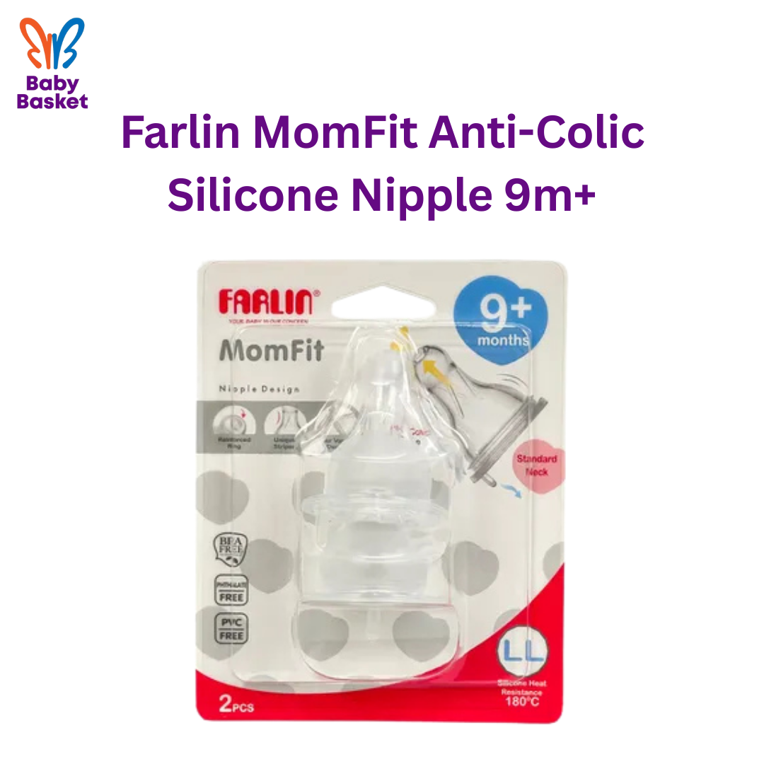 The Farlin MomFit Anti-Colic Silicone Nipple (2 Pcs Set) is designed to provide a smooth and comfortable feeding experience for growing babies. Suitable for babies aged 9 months and above, the anti-colic design helps reduce air intake, minimizing gas and feeding discomfort.