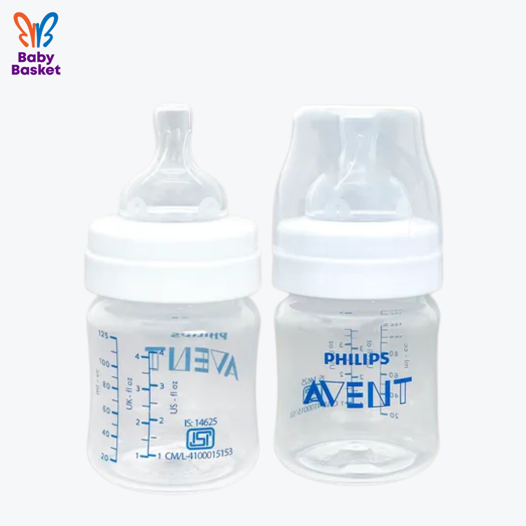 The Philips Avent Anti-Colic PP Feeder – 125 ml (Twin Pack) is designed to support a comfortable feeding experience for newborns from birth. Featuring the advanced anti-colic valve, this bottle helps reduce air ingestion during feeding, which may help minimize gas, colic, and discomfort.