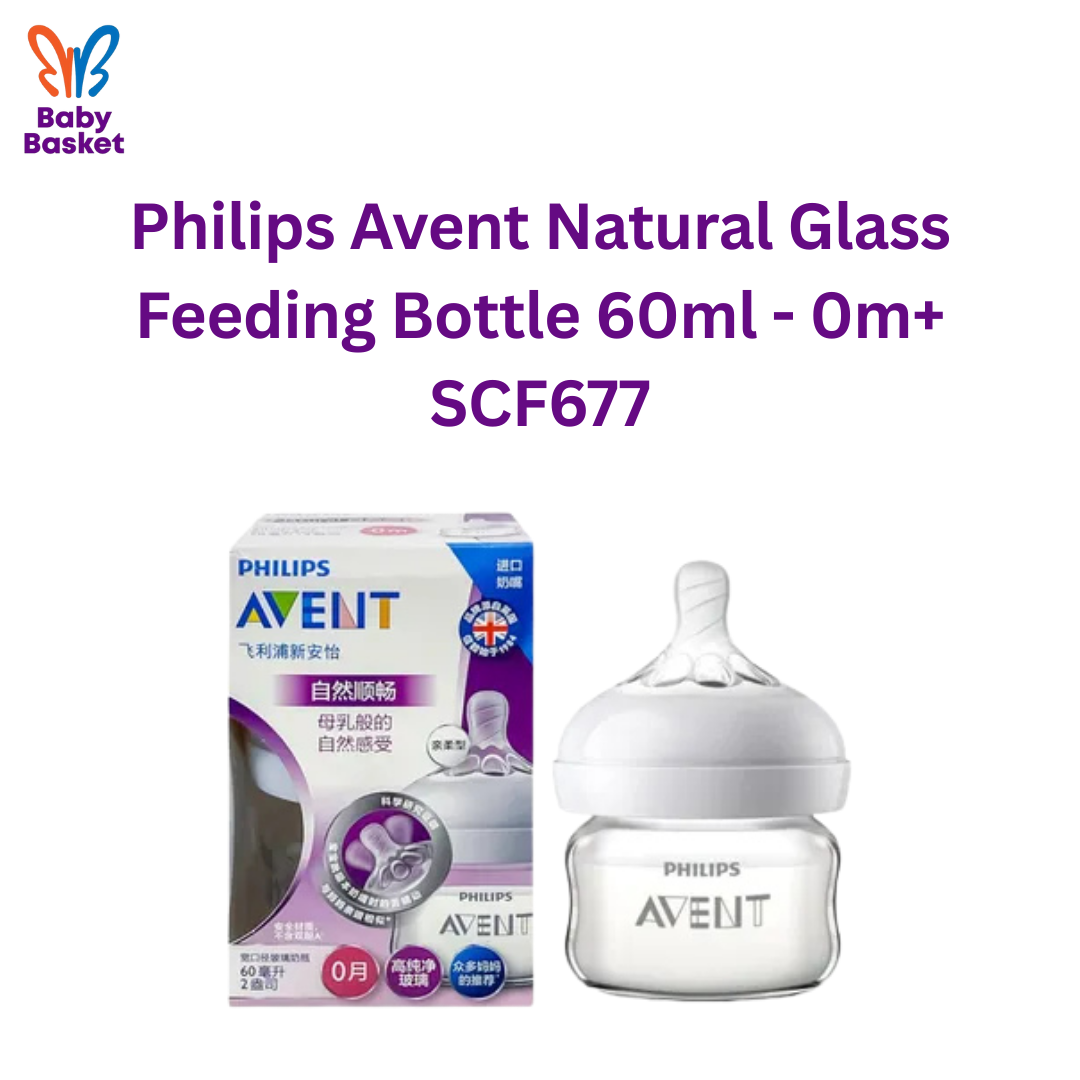 The Philips Avent Natural Glass Feeding Bottle – 60 ml (SCF677) is designed to support natural and comfortable feeding for newborns from birth. Made from high-quality borosilicate glass, this small-capacity bottle is ideal for early feeding needs, providing durability and ease of cleaning.