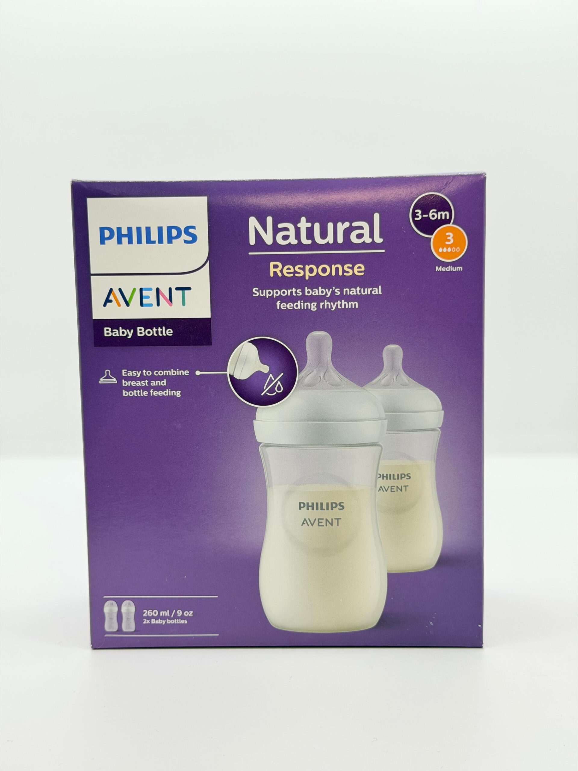 The Philips Avent Natural Response Baby Feeding Bottle – Wide Neck PP in a twin pack is designed to support a comfortable and natural feeding experience for babies aged 3 to 6 months. With a 260 ml capacity in each bottle, this set is ideal for everyday feeding and effortlessly accommodates growing milk needs.
