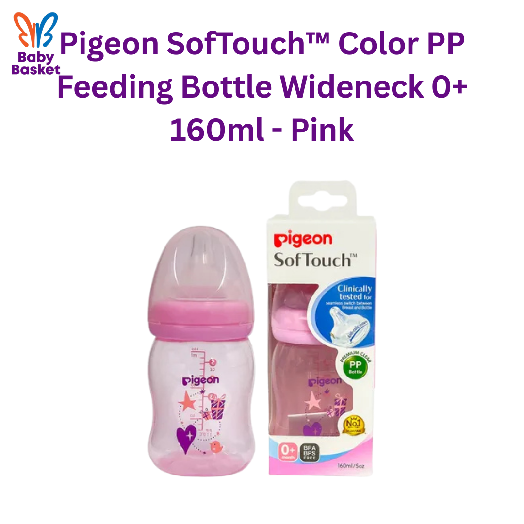 Pigeon SofTouch™ Color PP Feeding Bottle Wideneck 0+ 160ml – Pink
