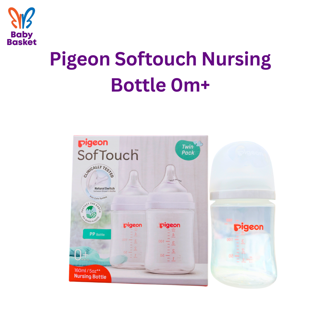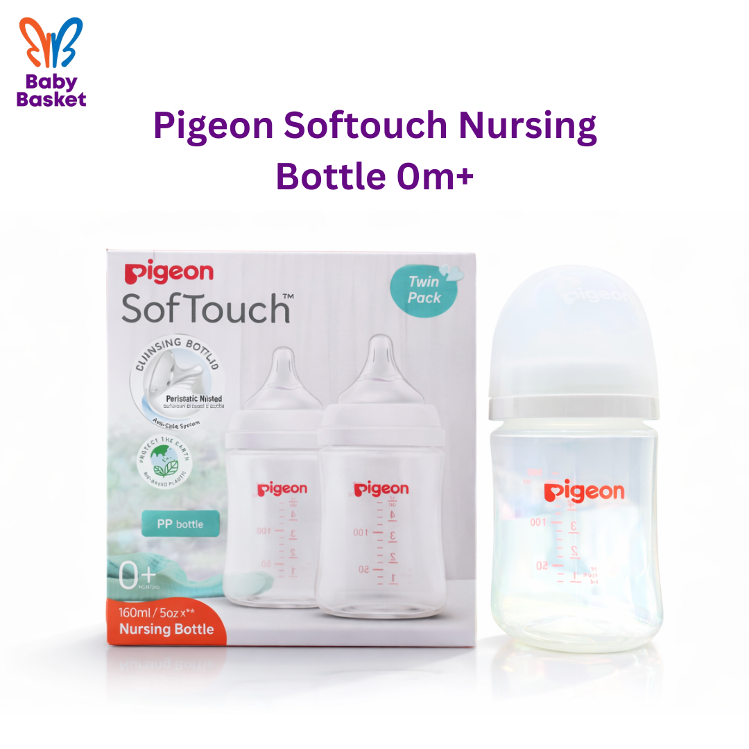 Pigeon Softouch Nursing Bottle (0m+) is a premium baby feeding bottle designed for everyday use from birth. It features a soft silicone nipple that mimics natural suckling and promotes comfortable, smooth feeding. Made with high-quality, durable materials and an ergonomic shape, it’s easy to hold, easy to clean, and perfect for newborn feeding routines.