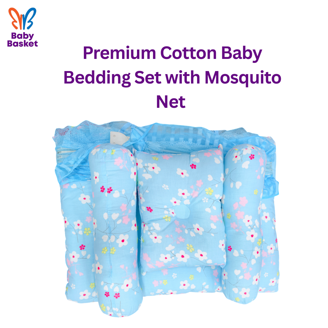 Create a safe, cozy, and protected sleep space for your little one with this Premium Cotton Baby Bedding Set with Mosquito Net, expertly crafted for infants. Made with soft, breathable cotton fabric, this complete bedding solution combines comfort, support, and insect protection — perfect for daily use at home or while traveling.