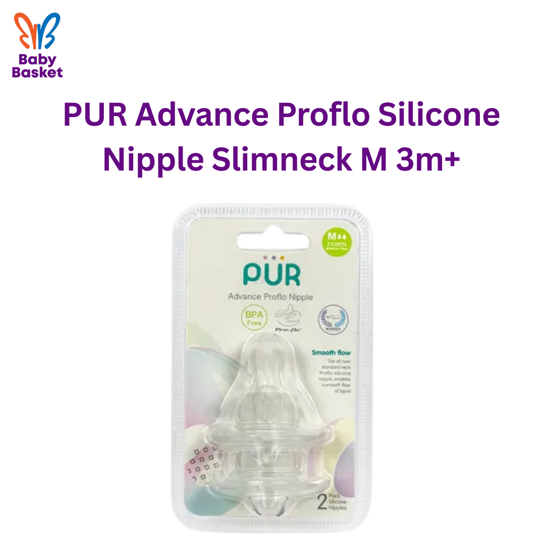 Safe, reliable, and easy to use, the PUR Advance Proflo Silicone Nipple – Slim Neck M supports comfortable feeding as your baby grows.