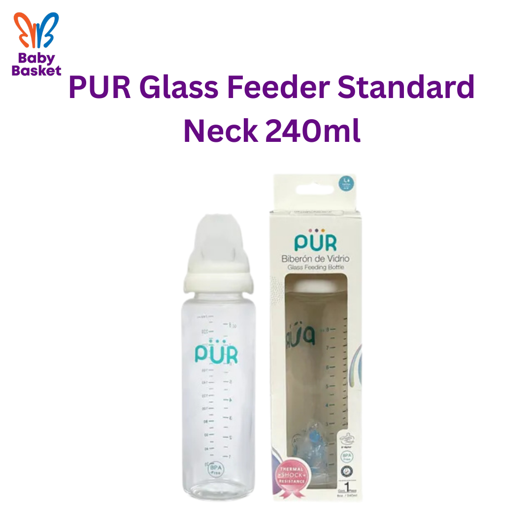 The PUR Glass Feeder – Standard Neck (240 ml) is designed to provide a natural, practical, and reliable feeding experience for infants and babies. Made from high-quality glass, this feeder bottle is sturdy, heat-resistant, and easy to clean, offering long-lasting use.
